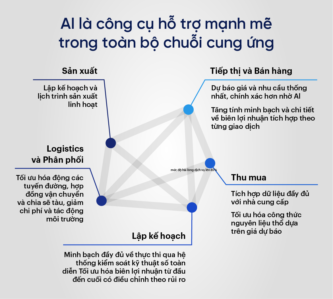 - Trí tuệ nhân tạo (AI): Tối ưu hóa phân phối và logistics bằng các thuật toán AI giúp đưa ra quyết định dựa trên dữ liệu, lập kế hoạch lộ trình chính xác.