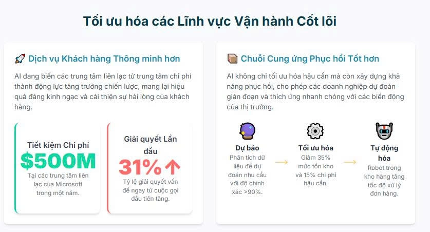 ✔ Tái hình dung Quy trình Cốt lõi: Thách thức các mô hình vận hành hiện có và khám phá cách AI có thể tạo ra những phương thức tạo giá trị mới.